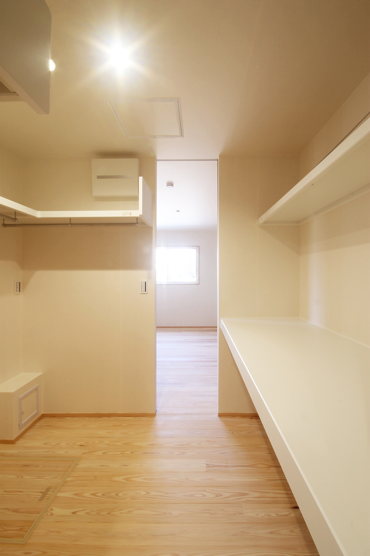 寝室、WIC、水回り、キッチン、リビングと 滞りなく回遊できる使いやすい動線となっています。